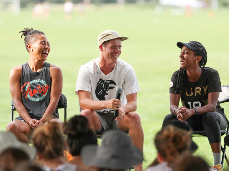 At our D-I College Championships and U.S. Open Club Championships, we have hosted and supported equity and diversity forums featuring panels of youth, college and club players sharing their experiences with these issues on and off the field. Topics of discussion have included racial and gender equity, as well as the intersection of implicit bias and microaggressions in ultimate.